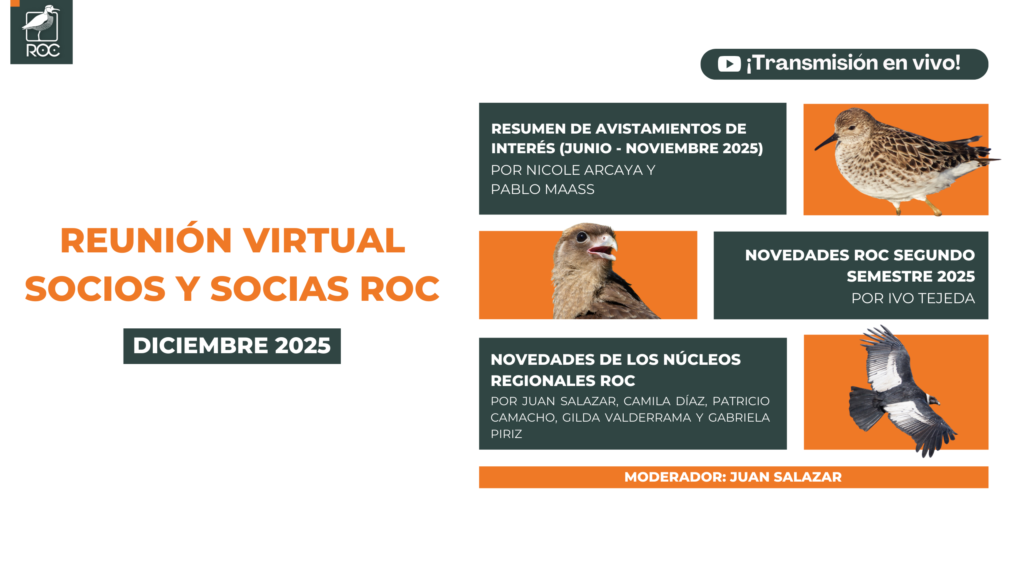 ¡Atención bandada!, comunidad, agrupaciones territoriales, establecimientos educativos, familias y amantes de la naturaleza. Desde la Red de Observadores de Aves y Vida Silvestre de Chile (ROC) les extendemos una cordial invitación a ser parte del Día de la Gaviota 2025, una celebración abierta, comunitaria y multidisciplinaria que nos convoca a conocer, valorar y proteger las […]