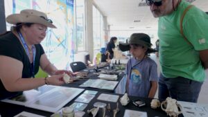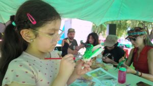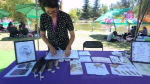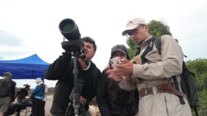 En paralelo, se desarrollaron diversas charlas y talleres en el sector del Anfiteatro Nicanor Molinare. La primera de ellas estuvo a cargo de Vicente Pantoja (ROC), quien compartió con una entusiasta audiencia una variedad de técnicas para realizar buenas observaciones de aves, a partir de la fotografía, la bioacústica, y el uso de herramientas de ciencia ciudadana. También contamos con un taller de ilustración de aves, con el destacado ilustrador Tomás Infante (Faunánimo), el que transmitió su llamativa propuesta gráfica que combina arte, humor y educación.