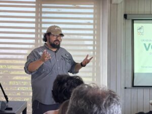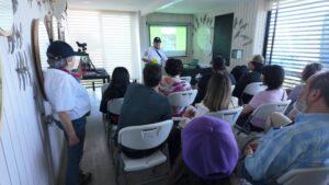 Luego, las actividades cruzaron el río para aterrizar en el Parque Humedal Río Maipo, donde una numerosa concurrencia participó de sendas charlas pajareras. La primera de ellas fue brindada por Manuel Rojas de REDAVES, quien compartió su nutrida experiencia ornitológica a través de una presentación sobre las características ecológicas de la avifauna del Maipo.