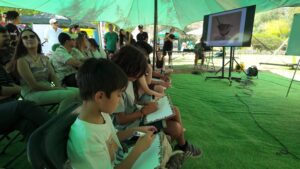 Luego, fue el momento de los más pequeños, quienes disfrutaron de un taller de observación de aves para niños y niñas, desarrollado por el profesor Lucas Quivira (ROC), y de un concurso de trivia pajarera, donde los y las participantes midieron sus conocimientos, llevándose fabulosos premios, cortesía de los emprendimientos de la feria. Finalmente, contamos con dos interesantes charlas: una presentación de la organización Mapuko, sobre su trabajo de protección de la Reserva Natural Los Pozones, y de Puente Alto Nativo, acerca de la biología de las aves rapaces nocturnas. La jornada concluyó con un taller a cargo del equipo de la RENAMU, donde se combinó la observación de aves y el conocimiento sobre la historia natural de El Trapiche.
