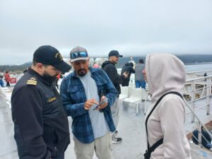 Ese mismo mes, el equipo realizó un taller de capacitación a la tripulación del ferry KOTAIX de la empresa Somarco, colaboradores activos del proyecto mediante el traslado gratuito del equipo. Esta actividad, tuvo como objetivo capacitar al personal en el manejo de ejemplares afectados por contaminación lumínica a bordo de la embarcación y brindar consejos básicos para su manejo y liberación.
