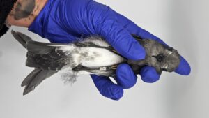 Debido a las capturas exitosas de diciembre, el equipo gestionó anillos específicos para aves del género Oceanites, logrando anillar por primera vez tres ejemplares adultos de golondrina de mar pincoya. En este caso, los individuos ya comenzaban a emplumar su parche de incubación, lo que aportó antecedentes relevantes sobre la fenología reproductiva de la especie.
