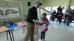 La jornada comenzó con palabras del director de la escuela, Jorge Asencio, seguidas por la intervención de la profesora Lorna Colhuán, colaboradora histórica en iniciativas educativas vinculadas a las aves y el humedal. Ambas intervenciones destacaron el valor de Coihuín como aula viva y como punto de encuentro para el aprendizaje, el juego y la conservación.