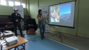 También se realizó “Alas para pintar”, taller guiado por Fridita Ilustraciones, donde participantes de todas las edades exploraron la ilustración naturalista inspirándose en especies locales. A esto se sumó “Rastros de cielo”, dedicado al análisis de plumas y egagrópilas, junto con la charla “El misterio de las aves marinas en Los Lagos”, que introdujo a los asistentes en el uso de tecnologías y monitoreos científicos en el fiordo.