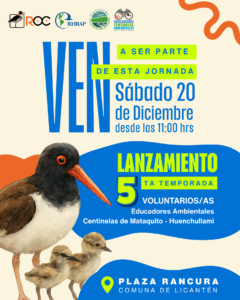 Para esto, invitamos a toda la comunidad al lanzamiento de la 5ta temporada de Educadores Ambientales Centinelas Mataquito – Huenchullamí, evento que se realizará este sábado 20 de diciembre a partir de las 11:00 horas, en Plaza Rancura, acceso a la playa en la comuna de Licantén. Durante la jornada se presentarán las acciones del programa, se dará a conocer la normativa local y nacional de protección del borde costero, se podrá conocer a monitores y voluntarios/as de la temporada 2026 y además, se realizará una actividad de observación de aves playeras.